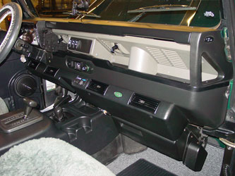 In the off road damage the steering wheel was even bent, so the customer sourced a new Defender Td5 style leather wrapped unit that we have installed into the 90. The steering wheel looks great, actually better than the picture as the flash was playing up the color. To the naked eye the color looks correct and the wheel feels great.
