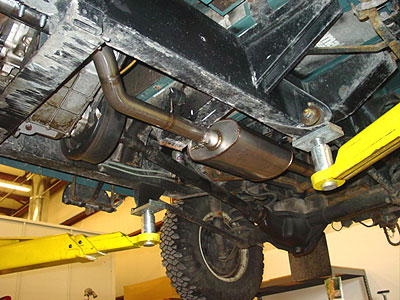 The system is as tight to the frame as possible for off road clearance and we have upgraded the hangers from the weak Series style we used way back when to a modern Defender style that will last longer and work better. Everything on the system is stainless steel from the muffler to the hanger brackets, so there will be no more rust issues.
