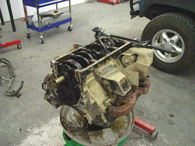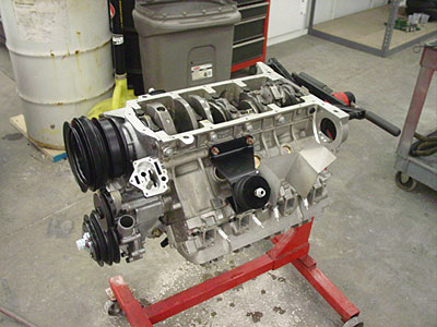 As the crew gets the rolling chassis together the old 3.9 V8 is pulled aside and put on an engine stand and stripped down. The non-moving parts will be cleaned and restored, but the moving parts of the engine will be replaced with a brand new Pursuit 4.6 (not a rebuilt motor). Once all the old parts are off and cleaned up we will toss the old 3.9 and begin to set up the Pursuit 4.6.