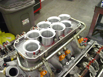 Here you can see a close up of the intake on the Pursuit. It allows more air into the engine with its modified air intakes and the new upgraded fuel injectors will help all that air become more power when things are running. Next up we will bench pre-lube the engine in order to assure a smooth start up once the engine is ready to fire in the engine bay.