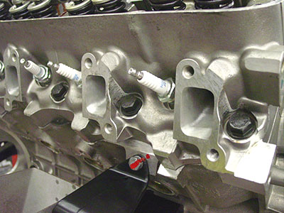 All that air going in has to go out as well in the form of exhaust. Here you can see the modified cylinder head on the Pursuit 4.6. The larger openings are gasket matched and will mate up perfectly to our modified exhaust manifolds that have been coated in Jet-Hot ceramic coating for reduced under hood temps and faster exhaust gas movement. The manifolds will then be mated to our 304 stainless steel exhaust system to complete the package.
