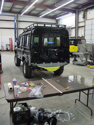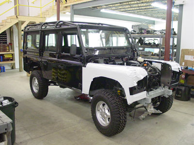 Here you can see the 110 up and running under the power of its new Pursuit 4.6 and automatic gearbox and it is looking fantastic. Next up we will install the ECR ROX sliders that have just come out of the paint booth and start installing the audio/video system.