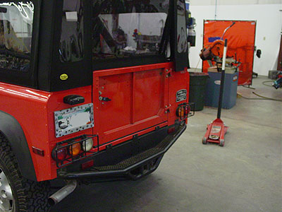 Here you can see the rear of the 90 has been buttoned up. The new windows in the top look great and all the tire carrier and 3rd brake light parts have been re-installed. We also adjust everything so that the tailgate closes correctly and so that nothing rattles or binds and use all stainless steel hardware so that rust won't be a factor.