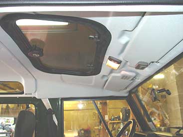 Another upgrade the customer wanted was a sunroof. Here you can see that we have used our templates to cut the hole in the sunroof in the correct location, in the correct size. The beauty of working on Defenders every day is that we have templates for just about everything, over the last decade plus we have done just about anything you can imagine to Defenders, and we keep track of it all. This extensive knowledge of Defenders allows us to do this kind of job correctly, and much faster than your local shop that would be taking a guess on where to install your sunroof.
