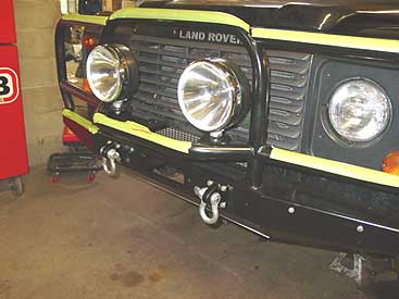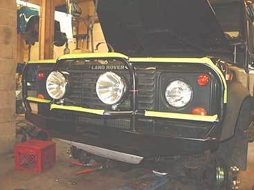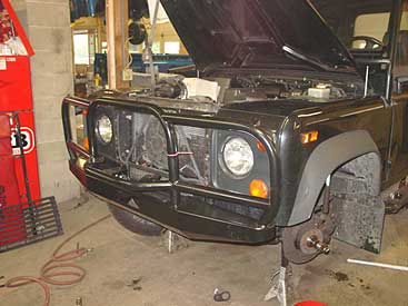 In this image you can see one of the upgrades going on. We have removed the weak and cheesy factory brush bar and installed a new ROX front bumper. This not only looks better, but it will help protect the front end of the 90 from obstacles, no matter if those obstacles are off road hazards or shopping carts.