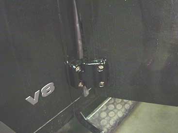 This image shows the new upgraded door hinges installed with the stainless steel hardware. These units will stop the rust bleeds and they look much better than the rusty hinges previously on the 90. For more information on why these hinges are cool, go here.
