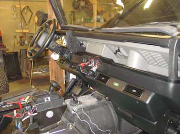 In the center console we have installed the new Alpine glide-strip head unit that will control all the music choices and even make it easy to control the iPod right through the radio. We made a bracket in the cubby box and you just plug in your iPod and close the cubby box. The system grabs songs from your iPod as needed and charges it as well. If your iPod ever runs out of songs you can switch to the 6 disc changer or the hundreds of channels on XM radio, and it is all nicely installed and won't harm any other aspect of your Defender. If you think a stereo install can be done by your "local shop" check out this page for why you are wrong.