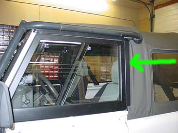 Next step was to complete the install of the upgraded top. The top was put on the 90 but the modifications for the gutter kit installation had not been done. At the customers request we powder coated the gutter kit (green arrow) to give the 90's top system a nice finished look.