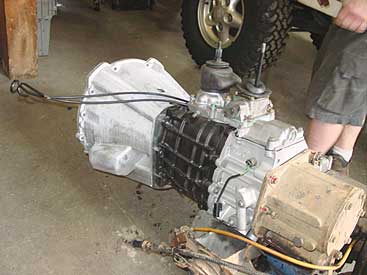Along with the new 4.6 this D90 gets a new R380 5 speed gearbox to replace the worn out original LT77 unit. Here you can see we have set up the new R380 on the existing LT230 transfer case and crossed over all the parts to make for a correct and long lasting install. Why have ECR install your new gearbox instead of a local shop? Go here for a few reasons.