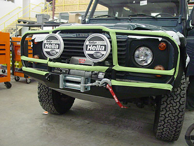 Upfront on the Rover we have installed a ROX front bumper with a Warn 9000 winch and 2 recovery points. The original Hella 3000 lights have been saved and used again on the new bumper set up.