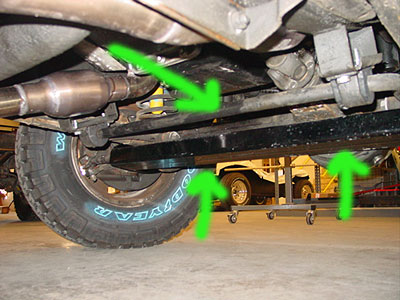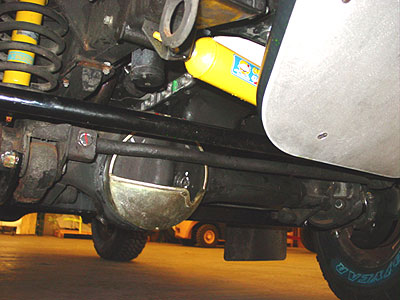 To protect the tie rod from harm we have installed a ROX tie rod guard. This HD unit surrounds the tie rod completely keeping it from harm. This unit is so tough you can even jack up the Rover by it if you see fit. Our set up is the only one on the market that allows you to retain the factory sway bar if you like (see upper arrow) and it does not interfere with anything else on the vehicle.