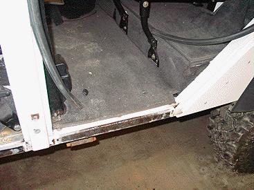 The first order of business is to address the rust issues. Here you can see the sill of the front passenger door. The salt air where the 110 used to hang out has taken its toll. The real problem though lies beneath this piece of rusted metal. The side body support on a 110 has this outside layer where the sill seal is supposed to be. As you can see the seal is missing and the steel is rusting badly.