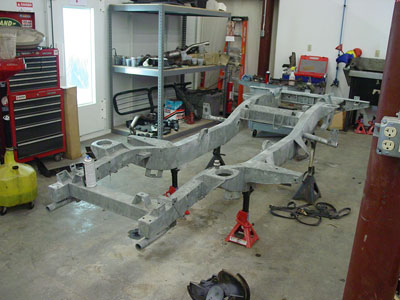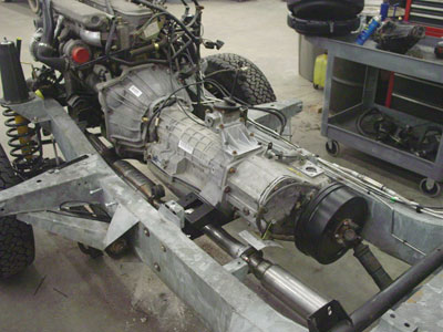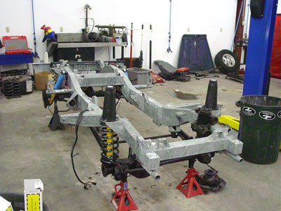 Once the axles are all built up we will slide them under the galvanized frame that will hold the new drive-train. After the axles go into place we will install the factory fresh engine and the new automatic set up.