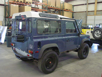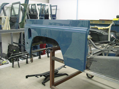 This image shows the rear body looking great again. Fresh coats of primer and Arles Blue have been applied to give the 90 the shine it deserves.