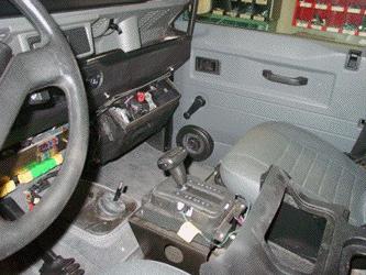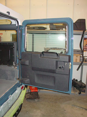 The front of the cabin is coming together as well. The AC system has been set up and tested and all the electrical systems have been brought up to snuff. We even set up the new rear door's wiper motor to work with the '97 NAS 90s multi-function ECU so that the rear wiper will cycle periodically, unlike the typical Euro Defender where it is either on or off.