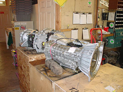 As the 90 and its old parts are being taken apart the new parts are made ready. Here you can see the new automatic gearbox being made ready. The new torque convertor has been filled and installed and next we will mate this set up to the proper transfer case and then to the new, not rebuilt, engine. Once those parts are together it will all drop into the new galvanized rolling chassis.