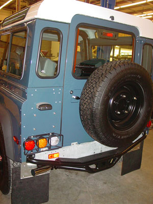The outside of that new rear door also has a much stronger spare tire carrier on it. The original NAS style rear doors had real strength issues in this regard and frequently the welds in the rear door would crack due to the weight of the tire, causing really annoying rattles and squeaks This new style rear door cures those issues and negates the need for an addition spare tire carrier for most size tires.