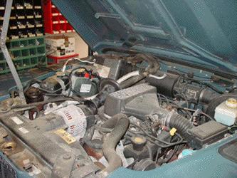 The V8 EFI engine bay looks like this when we begin, but soon we'll have all the parts removed and will be able to start with a blank canvas to get things set up the way the customer wants.
