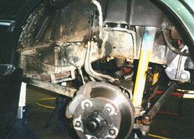 This image shows the front suspension with the air bag removed. With the air bags removed some work has to be done inside the vehicle to shut down the air computer system and the warning lights.