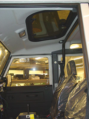 Here you can see that we have install the new headliners and the trim for the sunroof. NAS 110s didn't come with a sunroof but because we are rebuilding these trucks from the ground up we can add in things that Land Rover never offered in 1993, like a sunroof... or a 4.6 V8 mated to an automatic.