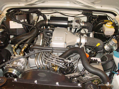 This image shows the new 4.6 a little further along in the build process. These ancillaries have now been added and the EFI wiring has been installed. All the sensors, hoses, belts and all wear items are all brand new Genuine Land Rover parts, so there is no worry when the customer heads off down the highway.