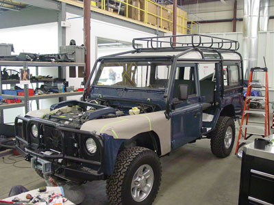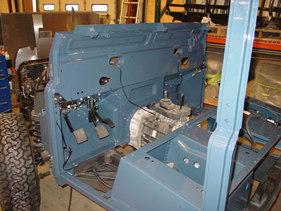 Here you can see the NAS 110 really coming together. The wiring is all in place and the drive-train has been test run. The safari cage has been zinc and powder coated and installed as well as the roof basket. The rear seats are in place and soon the rest of the interior will go into place.