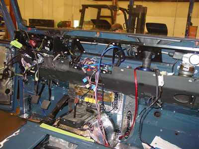 Here you can see the 110 being stripped down. It will be completely stripped prior to evaluation of each part for the restoration. If it is a steel body panel, it is replaced, not matter what its condition. We cut no corners in these vehicles and only 100% new steel pieces will do. The bulkhead rust in this 110 is only minor, but it is not patched or repaired in our work, the entire bulkhead will be replaced with new because "good enough" for other shops is not good enough for an ECR restoration. This isn't a refurbishment or a patch job, this is a full restoration to ECR standards, and that means like new or better.