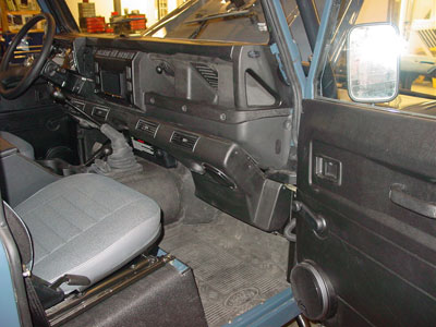 This image shows the updated dash and AC systems all in place. The 110 now has working vent flaps and modern switch gear to control all the systems. It all needs a good cleaning, but the truck will go to the detailer to have all the dust removed prior to delivery. We take these images in progress so you can see the build up of the Rover.