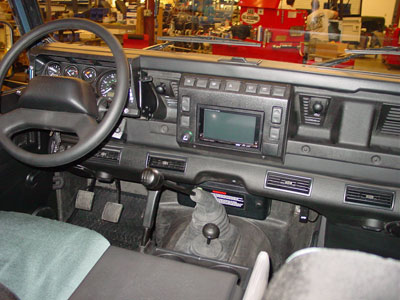 This images shows the dash and the Alpine unit fully assembled and ready for the customer. This is the first time we have put a double DIN head unit into a Defender and we think it came out pretty stock looking.