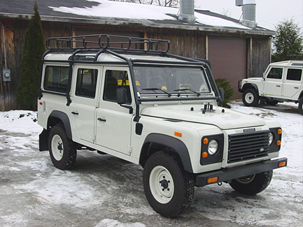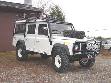 No aspect of the restoration was overlooked. The old LT77 gearbox was ditched in favor of a new R380 unit. The troublesome old AC system was removed and a new AC system installed along with a new updated dash. 4 wheel disc brakes were added to replace the disc/drum combination of the original. New Michelin tires were installed on new Defender 130 rims, updated door hinges were added and more. In #132 the tired old 3.9 liter V8 was removed and replaced with the efficient 300 Tdi (turbo diesel) engine. We can also install a powerful 4.6 liter Electronic Fuel Injected Rover V8s or even the Td5 turbo diesel engine with either 5 speed or automatic gearboxes. The frame was replaced, new door shells utilized, new headliners, new paint and we even powder coat the safari cage in satin black (just because we like that look better than the white cage) with an under coat of zinc primer so it won't bleed rust like the original. We even went as far as to think about all the small aspects of 110 ownership and we installed cup holders (something a stock 1993 NAS 110 does not even have) that actually work.