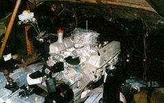 Here the bulkhead has been modified, and the new 3.9 Rover V8 and RoverR380 5 speed installed. This version has the Weber carb. and aluminum intakefor a 109 that will haul as well as move!