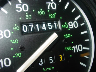 Compare that to this speedo that just arrived in a "low miles" 1995 Defender 90. You can see the font on the odometer is quite different. This is a replacement speedometer.