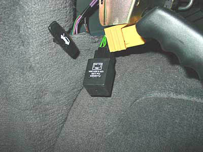 Pull the fuse box panel back and push up on the flasher relay base to release it from the metal support.