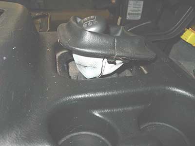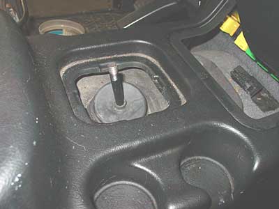 Reach in through the fuse panel area and pop the transfer case shifter boot up.