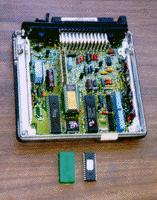 This image shows the open ECU with the standard Lucas chip removed and thenew chip system installed. We do not suggest you open your own ECU.